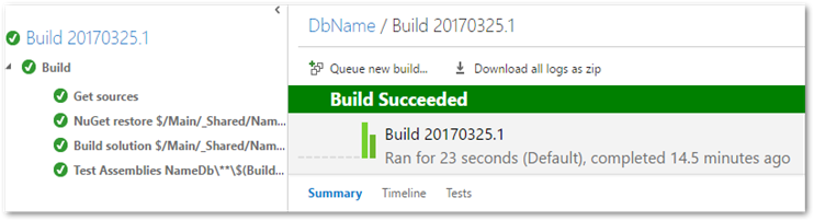 - NuGet Installer path: $/NameDb/NameDb.sln